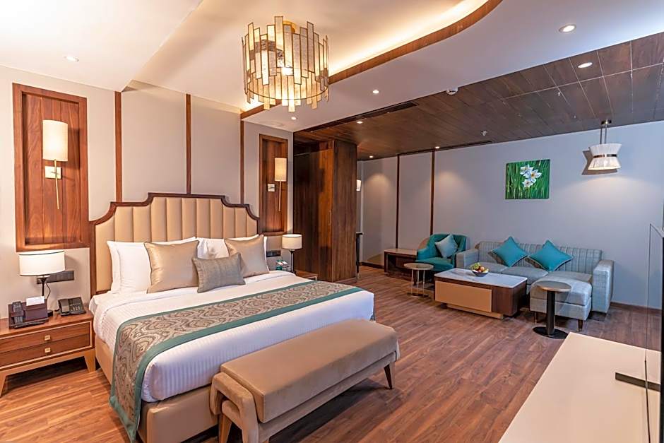 The spacious suite provides air conditioning, a mini-bar, a tea and coffee maker, a seating area, as well as a flat-screen TV with satellite channels. The unit offers 1 bed.